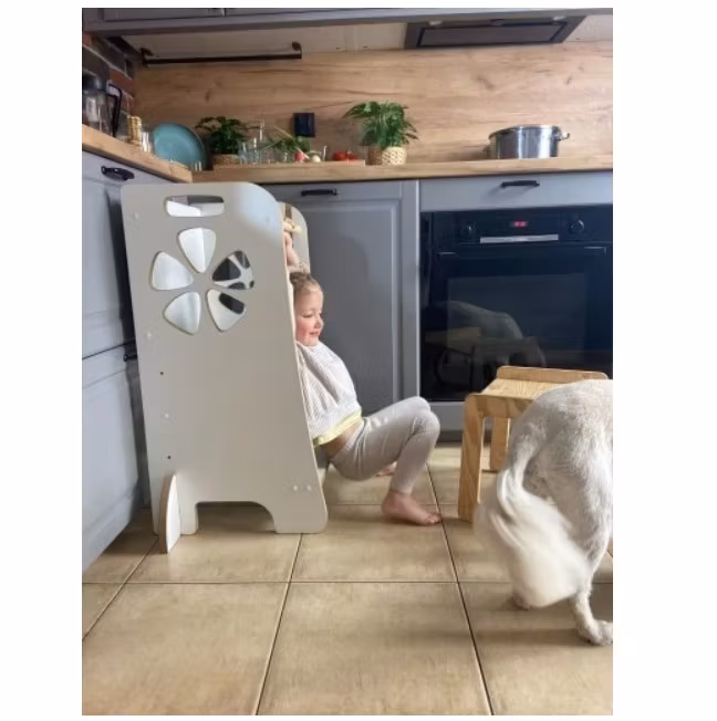 Montessori-kjøkkenhjelperen, også kjent som en kjøkkenhjelper, er den perfekte løsningen for foreldre som ønsker å engasjere barnet sitt i hverdagens kjøkkenaktiviteter – trygt og komfortabelt. Takket være den justerbare plattformen og den fullstendig lukkede strukturen kan barnet ditt bli med deg ved kjøkkenbenken, lære og ha det gøy samtidig.