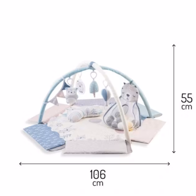 I tillegg: 30 baller med oppbevaringspose, 2 buer og 5 assorterte leker, pute