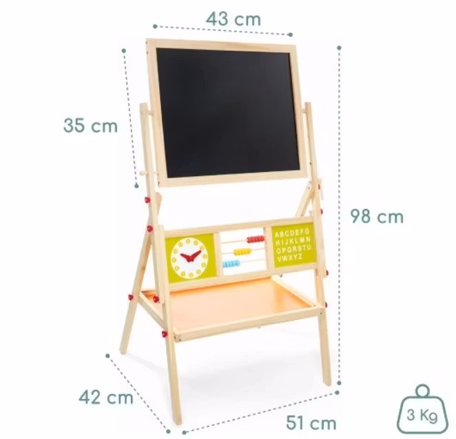 Trekonstruksjonen er helt trygg for barn, stabil og fri for farlige elementer. Brettet er montert på en sammenleggbar ramme, så når det er sammenslått, tar det minimalt med plass etter leken.