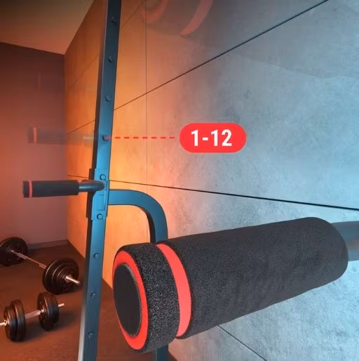 Stativet er utstyrt med justerbare holdere for vektstang. Dette gjør det mulig å utføre et bredt spekter av styrkeøvelser hjemme, som benkpress, markløft og knebøy.