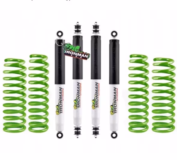 De forsterkede Ironman 4x4 Coil Springs er betydelig stivere (HD) enn originale fjærer og gir en heving på ca. 25–125 mm (1–6") avhengig av bilmodell.